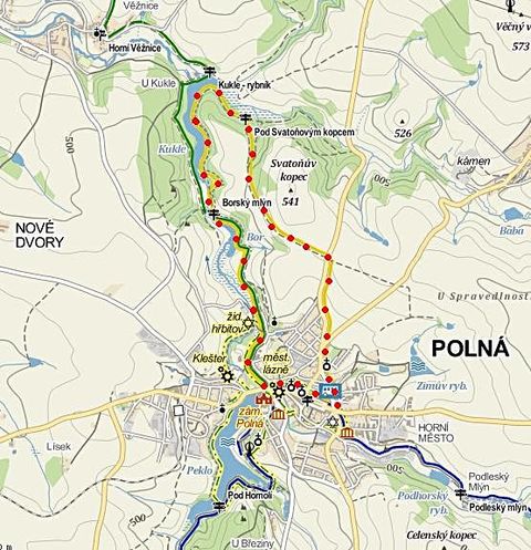 Trasa žlutě značené Pojmannovy stezky: Husovo náměstí Polná – Sezimovo náměstí – gotická brána – pod Kalvárií – rybník Bor – Borský (Štohanzlův) mlýn – rybník Kukle – pod Svatoňovým kopcem – kolem hřbitovního kostela sv. Barbory na Husovo náměstí = 6 km