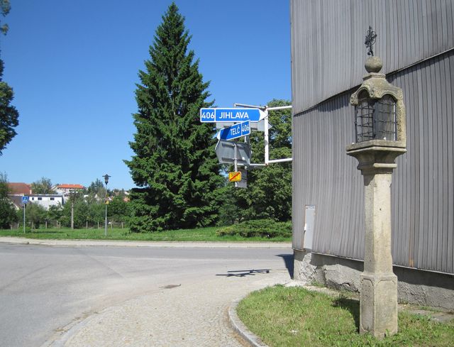 a s očima upřenýma na vozovku stoupající do kopce většinou (ke své škodě) přehlédnou půvabná boží muka z roku 1766.