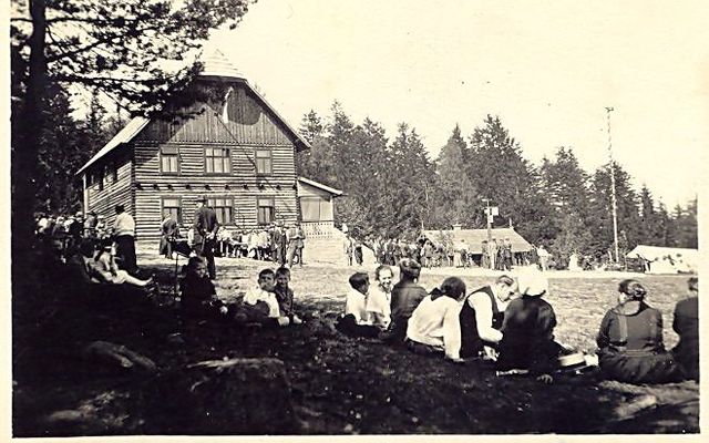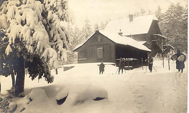 Před sto lety byla otevřena první turistická chata na Čeřínku, což je unikátní výročí, které si zaslouží exkurzi do historie. Tu podnikneme prostřednictvím fotografií, před léty pořízených Ing. Janem Krejčím v jihlavském archivu, nejdříve si ale můžete přečíst (poměrně strohou) tiskovou zprávu, kterou jsem napsala pro i-deník Vysočina-news. Trochu neosobní článek polidštíme obrázky z korunní akce turistů odboru Čeřínek, kteří se snaží pokračovat ve slavné tradici „výletů“ na hřeben kopce získaného na začátku 20. století do majetku českými příznivci lyžování. Ve dvacátých letech pak vstoupili na scénu turisté, kteří své dlouholeté snahy vyjádřili společně s lyžaři založením Turistického klubu Čeřínek, po Pohorské jednotě Radhošť (1884) a Klubu českých turistů (1888), třetí samostatné turistické organizace působící na území naší republiky.