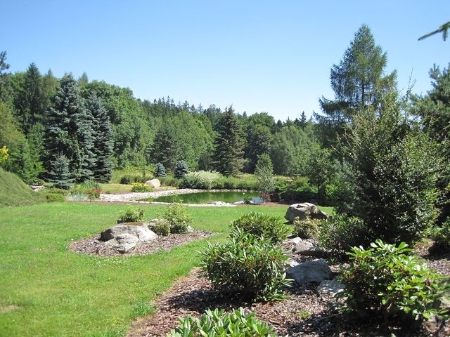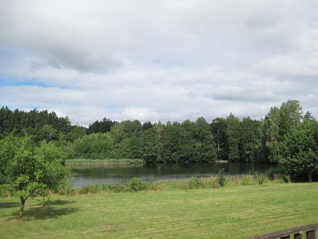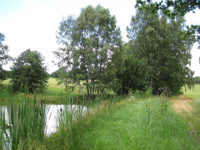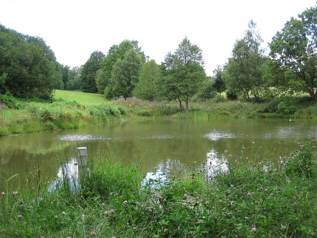 V půvabném dolíčku za lesem, před dalším zarostlým úvozem k Rejčkovu, je rybníček jako pro Rákosníčka.