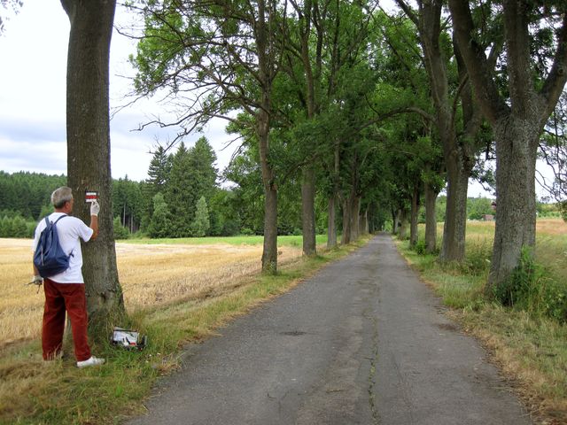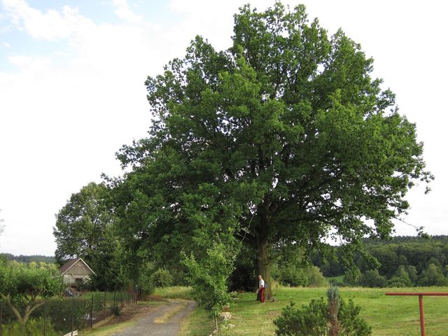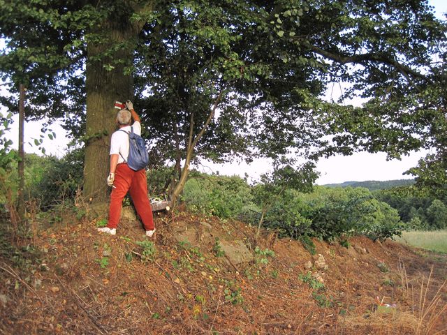 Nádherný dub na soukromém pozemku na kraji vsi přímo volal po nové značce, majitel se choval velmi vstřícně, a tak byl mohutný strom Mirkovýma rukama barevně ozdoben a tím posunut na vyšší stupínek při vzdávání úcty. 🙂