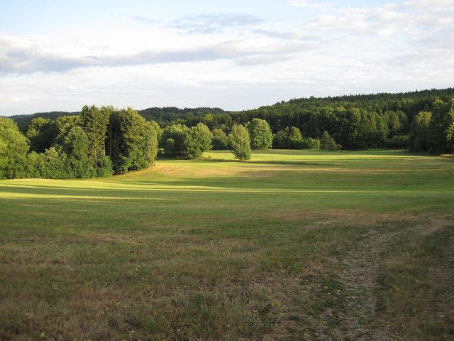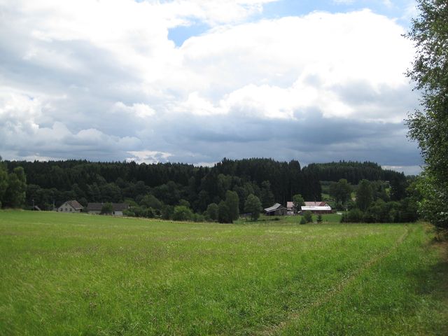 Červeně značená turistická trasa na okraji Přírodního parku Melechov, středa 31. července 2013