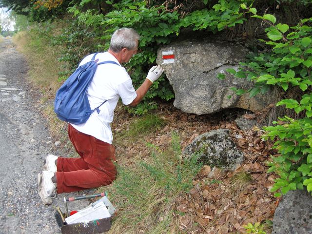Krajina se stále zvedala, k vrcholu Melechova (715 m) zbývalo pár kilometrů a asi sto výškových metrů, výhledy do blízkého i vzdálenějšího okolí se dají závidět značkařům, kteří co chvíli se svojí bedýnkou barev zastavují – jedno oko na štětci, druhé určené pro mapování terénu a zápis do paměti.