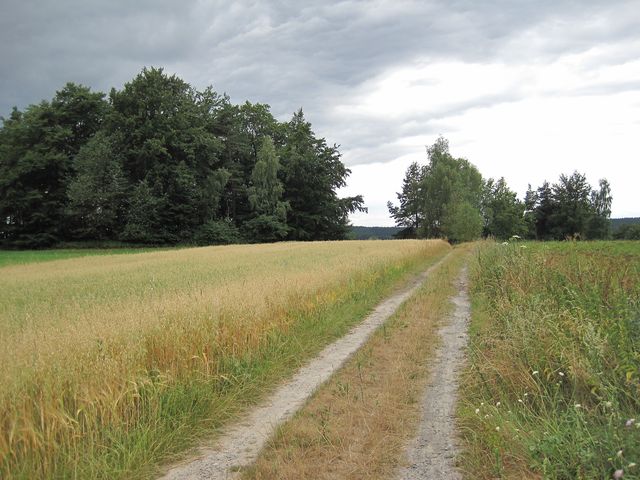 Pro následující úsek trasy byly charakteristické úvozy zarostlé náletovými křovinami natolik, že se staly neprůchodné a lidé si vyšlapali cestu po přilehlých loukách a polnostech – návod jim poskytly vyježděné koleje od traktorů. Značky v úvozové cestě jsou tedy k nepotřebě a my jsme řešili jejich nové umístění tak, aby orientace nebyla obtížná a turisté nebloudili.