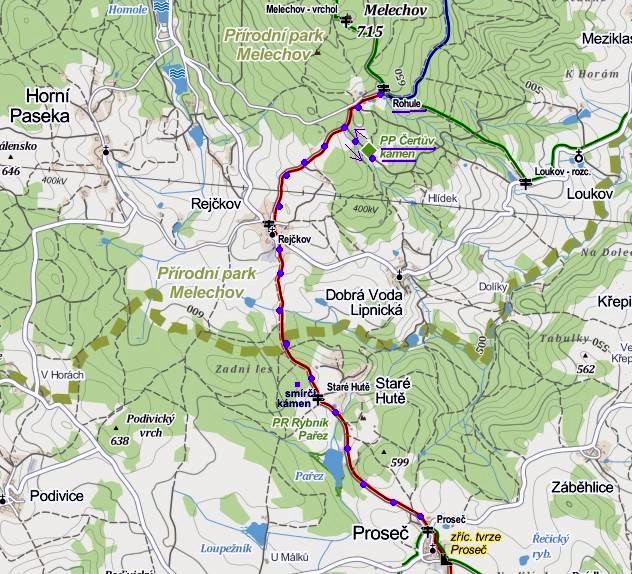 Rádi jsme využili možnosti obnovit značení na pětikilometrové trase mezi Prosečí u Humpolce a Rohulí pod Melechovem, protože tuto cestu jsme neznali a víme, že během dne, který je zapotřebí na obnovu a zviditelnění značek i zprůchodnění trasy je dost příležitostí zažít náladu celého úseku tak, aby se dostatečně vtiskl do paměti.