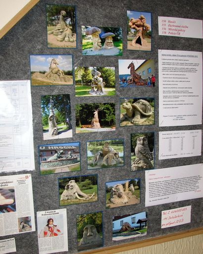 Dostali jsme mapky vybrané trasy a ocenili dokonalý servis pro turisty zdaleka, kteří se poprvé setkají s unikátními sochami Michala Olšiaka ve volné krajině – na nástěnce spatří obrázky,
