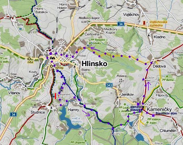 Z osmi nabízených tras jsme zvolili: Hlinsko MTZ – Svatojanské Lázně – Hamry – Lány ZTZ – Kameničky ČTZ – Dědová ŽTZ – Hlinsko = 18 km