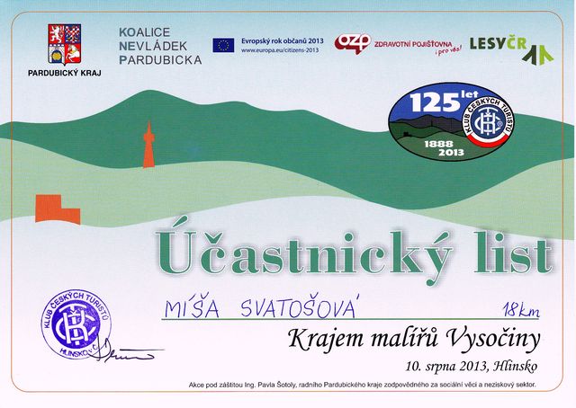 Shodou okolností jsme Hlinsko v minulých letech navštívili vždycky v zimě, většinou při příležitosti silvestrovského setkání u pramene Chrudimky, a tak jsem využila možnosti zúčastnit se s Jitkou a Honzou 35. ročníku letního hlineckého pochodu; Mirek měl jiný, neodkladný program, tedy pořízení obrázků leželo na mně a ščudle.