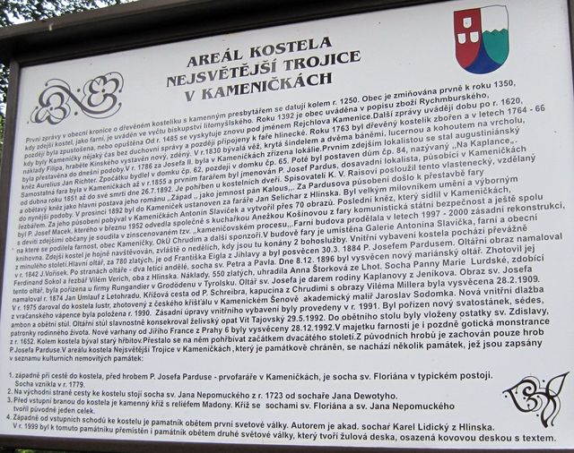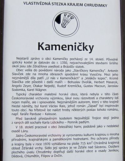 O Kameničkách nečtete na našem blogu poprvé, proto zařadím foto vývěsky, kde jsou v kostce všechny podstatné údaje: