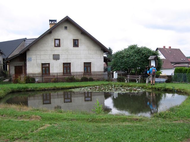 Odbočili jsme z cesty, abychom zašli na konec vsi k Volákovu statku, kde na začátku 20. století pobýval malíř Antonín Slavíček,