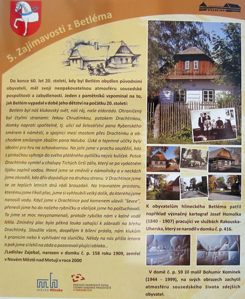 Historie Hlinska sahá do 12. století, roubené a zděné domky ve čtvrti nazvané Betlém, které tolik zviditelnily město, však pocházejí až ze druhé poloviny 18. století. Po zrušení nevolnictví došlo k rozvoji řemesel a hrnčíři, později, když došla hlína, tak tkalci, ale i pasíři, ševci, kožešníci, prostě řemeslníci, si stavěli na pravém břehu Chrudimky malá obydlí, která záhy zabrala celý vyhrazený prostor. Během 20. století mnoho domků zchátralo a zcela zmizelo, až v devadesátých letech započaly opravy a záchrana zbylých.