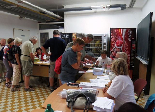 Ve středu 14. srpna odpoledne jsme přibyli do Krumlova a první cesta vedla do gymnázia, kde sídlil štáb pořadatelů.