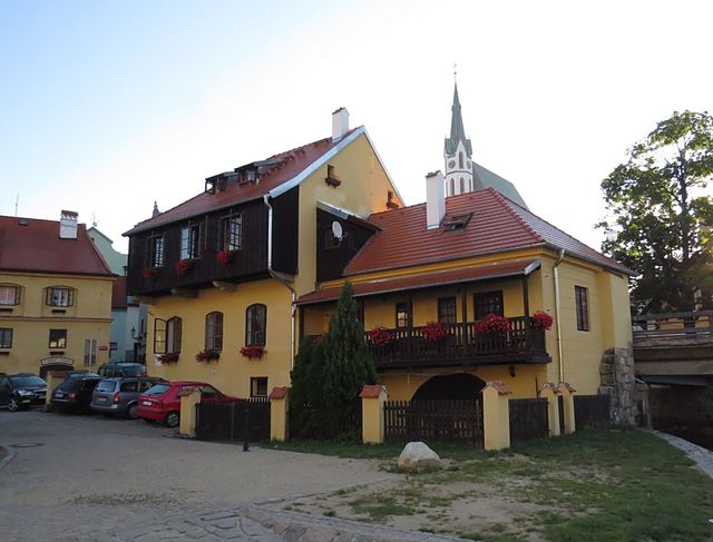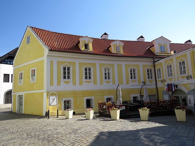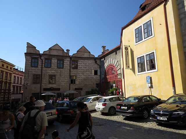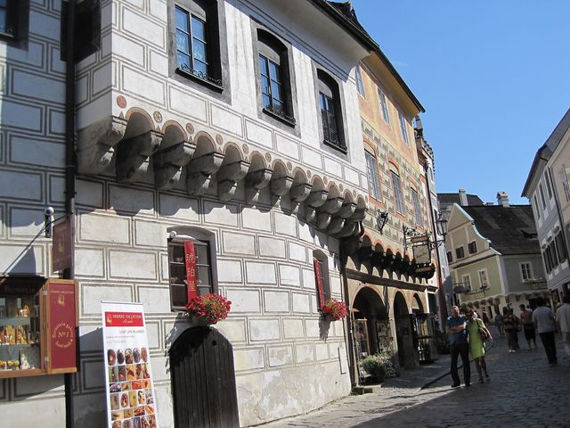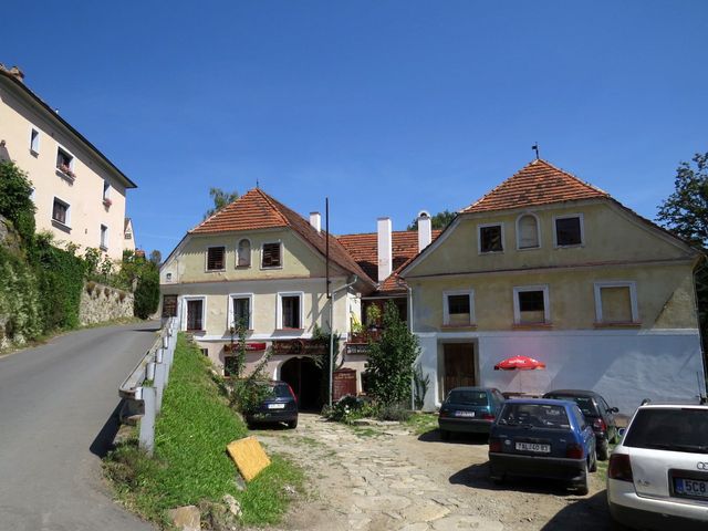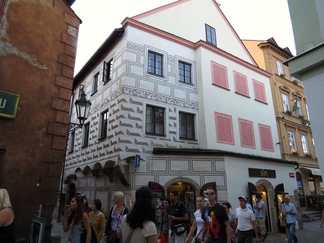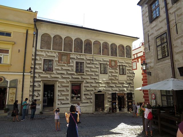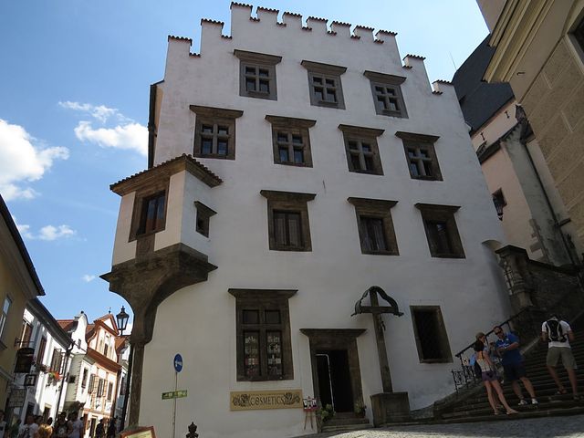Dům na dalším obrázku se nazývá „Slepičkovský“ – vlastnila ho Dorota Slepičková, která se v roce 1566 provdala za Jakuba Krčína z Jelčan (1535–1604), stavitele rožmberských rybníků. Nutno uvést, že o třicet let starší ženu si vzal Krčín, kterému tehdy hrozilo vězení pro dlužníky, kvůli jejímu bohatství, ale na dědictví musel čekat 21 let… Bydleli spolu v tomto domě, který hned po její smrti prodal; dům se také nazývá Stará zámecká lékárna (ta tu byla skoro dvě stě let, až do roku 1915).