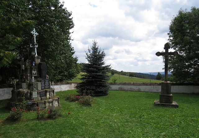 Na kouzelný květinový chlumek jsme nezašli, ale v jeho blízkosti jsme se pozastavili u hřbitova bez hrobů s památníkem z náhrobků a částí pomníkových desek: