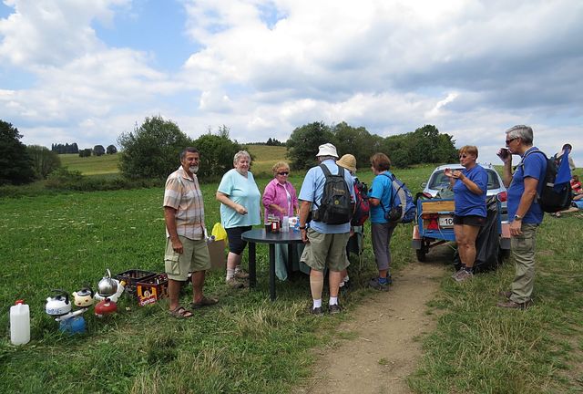 Po několika dalších kilometrech cesty na jihozápad jsme si zasloužili občerstvení (na mapce vyznačeno P = pití 🙂 ), při němž jsme se konečně setkali s našimi milými Maruškami, které dokáží na trase připravit excelentní kávu oslazenou vlídným slovem a tak zářivým úsměvem, že nohy po ní samy dále běží…