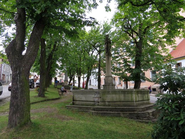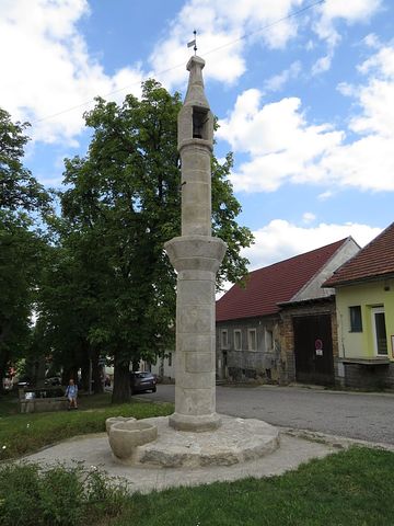 např. pranýř už se nedochoval ledakde, ale zde na horním konci atypického náměstí stojí od roku 1549 v plné kráse i se dvěma mísami k odměřování desátků.