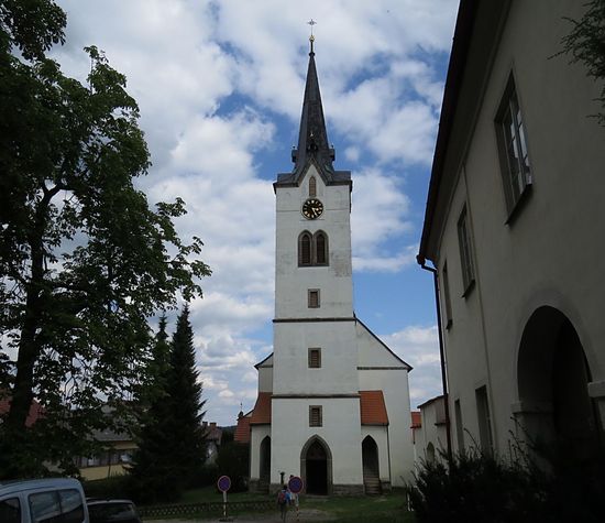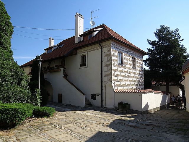 Z tohoto místa je velkolepý pohled na kostel sv. Víta, jehož stavba začala na samém počátku 15. století právě tam, kde už dříve stával kostelík románský.