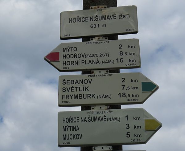 Český Krumlov MTZ – Malotín – Slavkov – Světlík ZTZ – sv. Trojice – dále po fáborkovém značení údolím Čertice – U Vojslav ŽTZ – Hořice na Šumavě = 25 km