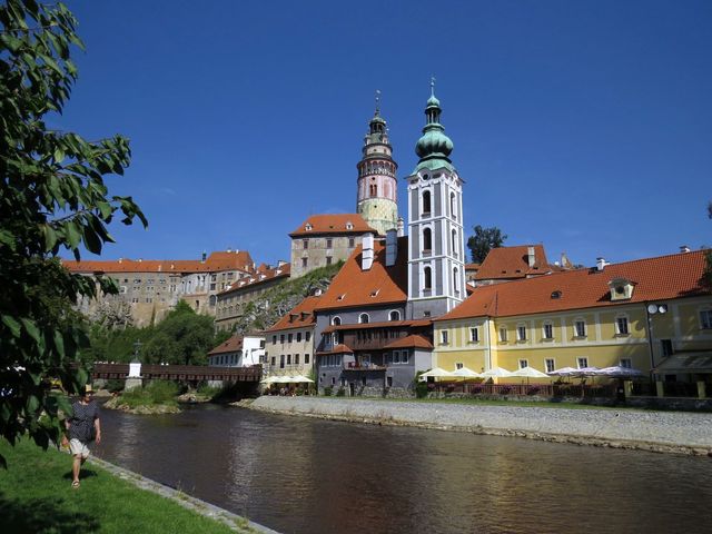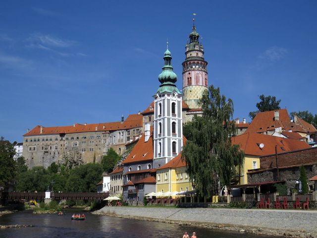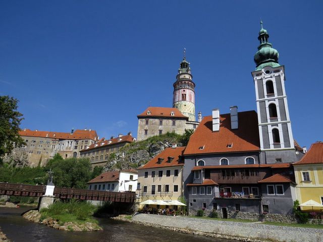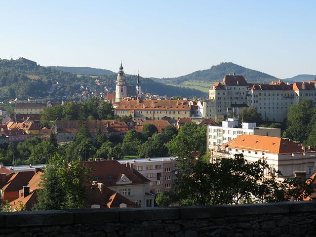 Slunko vstalo už brzy ráno, tak jsme cestou ke krumlovskému nádraží, což byl směr, kterým jsme dneska město opouštěli, nemohli oči odtrhnout od známého panoráma: