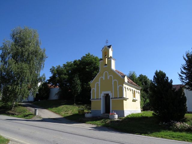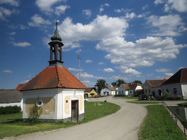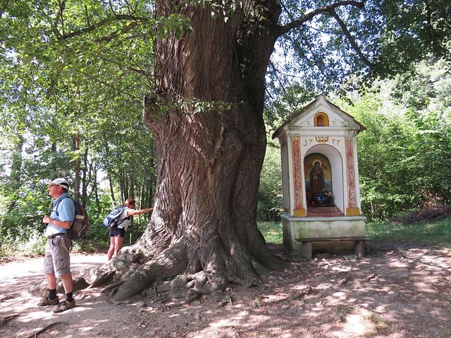 Červená značka nás převedla přes kopec do Třísova k „rožmberské lípě“ a kapličce z roku 1777 zasvěcené Panně Marii.