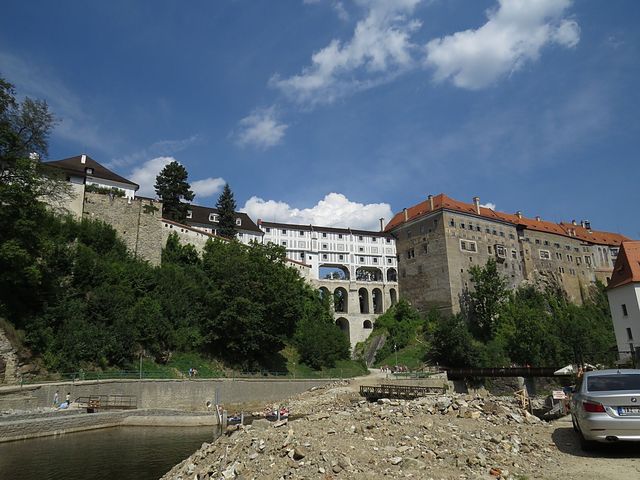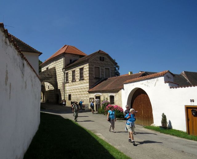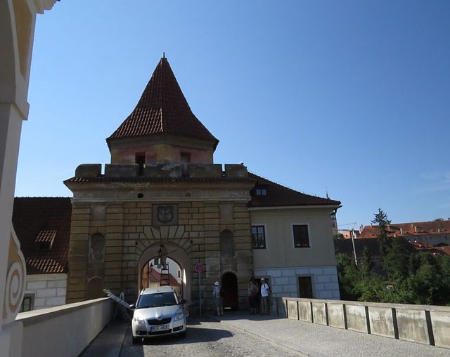 Začínáme tedy Budějovickou bránou, kterou na konci 16. století financoval Petr Vok, pánové Wimmer i Codl nás upozorňovali na vzhled vnější fasády, která má budit v příchozím respekt, kdežto při pohledu z centra města jeví objekt vlídnou tvář.