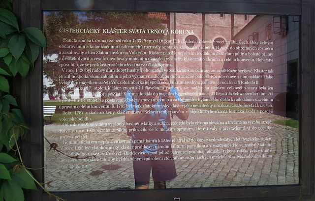 Z Průvodce se dozvídáme, že klášter byl založen 1. května 1350 Kateřinou z Rožmberka a jejími čtyřmi syny (o nich více při návštěvě hradu Dívčí Kámen) a přesně po 600 letech zrušen!! (1. května 1950) Dnes patří část řeholníkům a část umělecké průmyslovce. Objektu se prý říká Tramín.