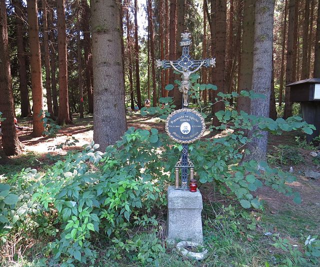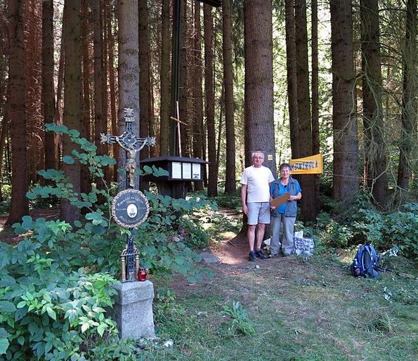 Dále nás vedla zeleně značená stezka na nyní opuštěné lesní rozcestí U sv. Trojice,