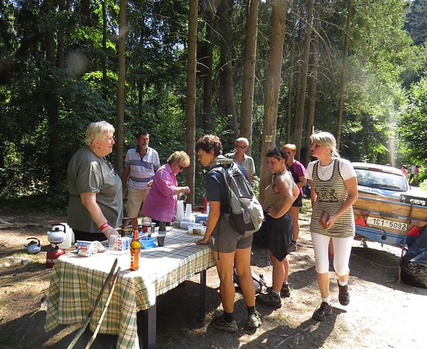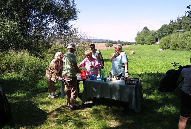 až ke zřícenině středověkého hradu Dívčí Kámen, jehož návštěvu jsme kvůli časové tísni odložili na zítřek – teď jsme se zastavili u pojízdné kavárny a restaurace „Marušky“ a užili jsme si poslední letošní setkání – příští bude až 20.–24. 8. 2014 v Třeboni. 🙂