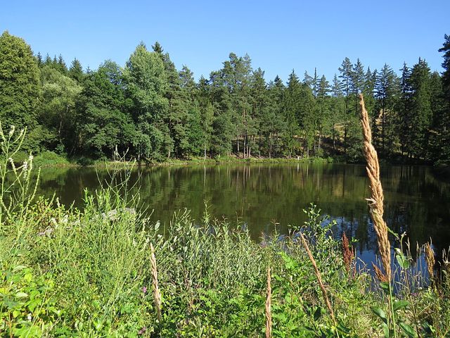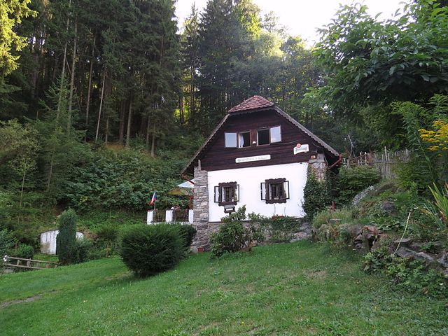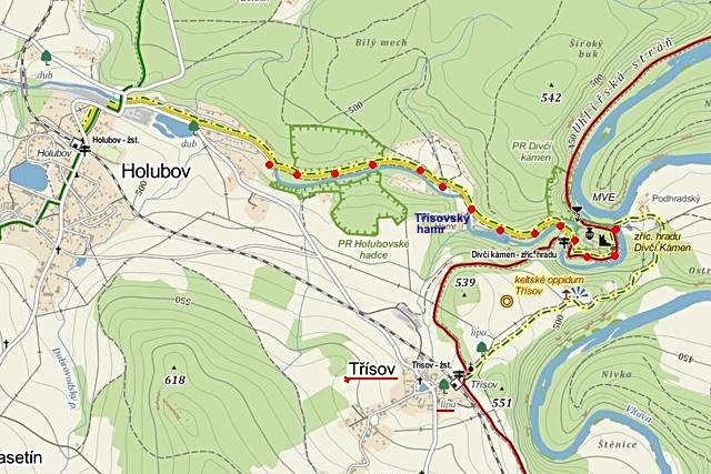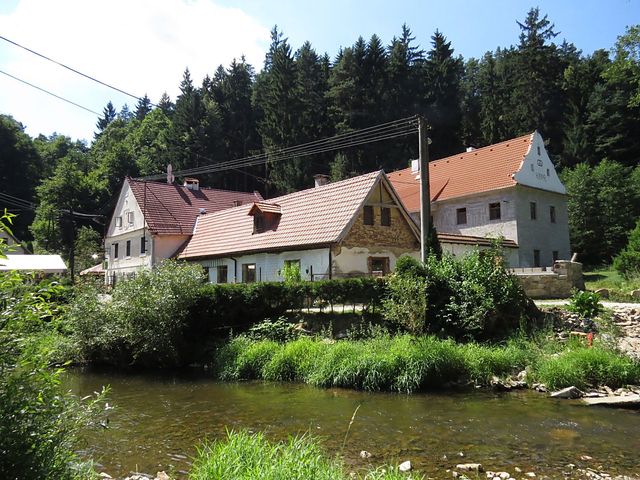 V Holubově se ujala vedoucí role žlutá značka, která nás podél Křemžského potoka dovedla kolem Třísovského Hamru