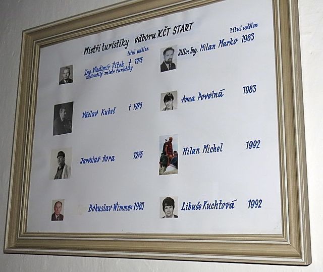 Podívejte se na tabuli, kde jsou uvedena jména turistů, kteří získali titul mistr turistiky – ten se rozhodně nezíská snadno!