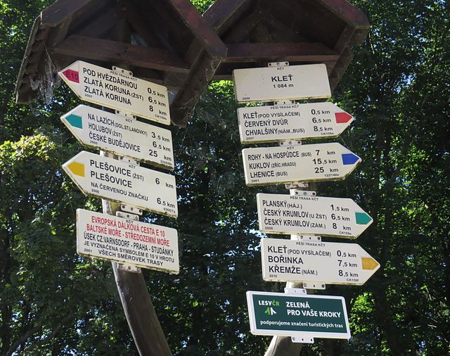Po zelené značce je osmikilometrová cesta z Krumlova na Kleť (1084 m n. m.), nejvyšší vrchol Blanského lesa, snadná a záživná, převýšení je rovnoměrně rozloženo, a tak, než se nadáš, stojíš před Tereziinou chatou (vystavěna roku 1925) u vrcholového směrovníku.