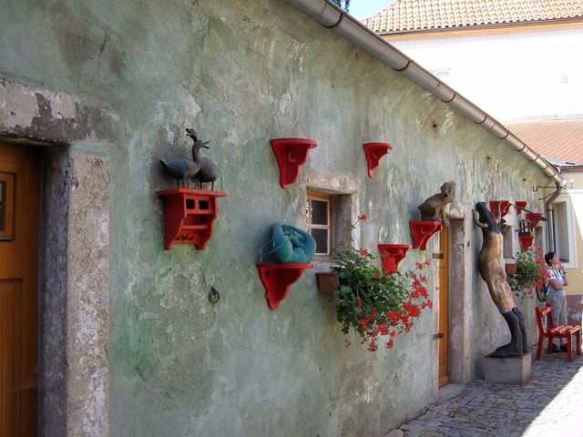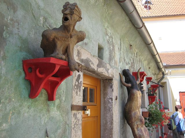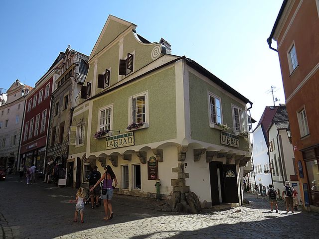 Vrátili jsme se na Latrán, tedy původně podhradí – historie každého zdejšího domu je bohatá a sahá do středověku, všechny prošly řadou přestaveb a je radost se dívat, že i většina současných majitelů nezanedbává údržbu, např. dům č. 78 má kořeny už ve 14. století, od poloviny 18. století patřil patricijskému rodu Pinskerů, býval prý rokokovým palácem.