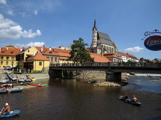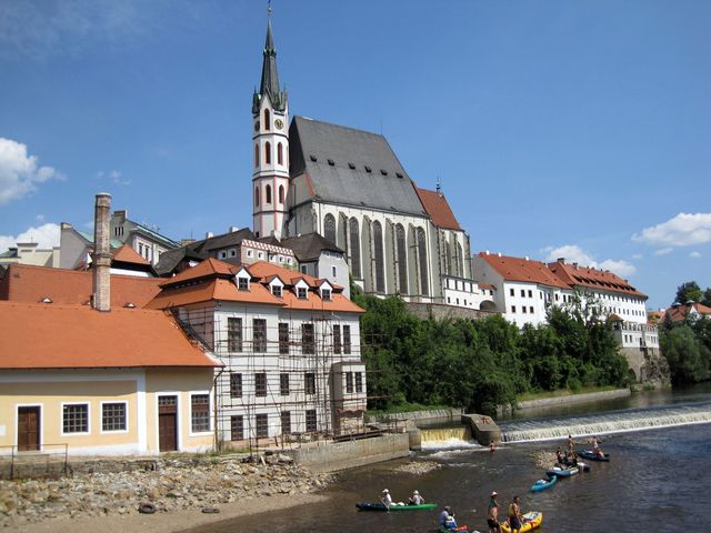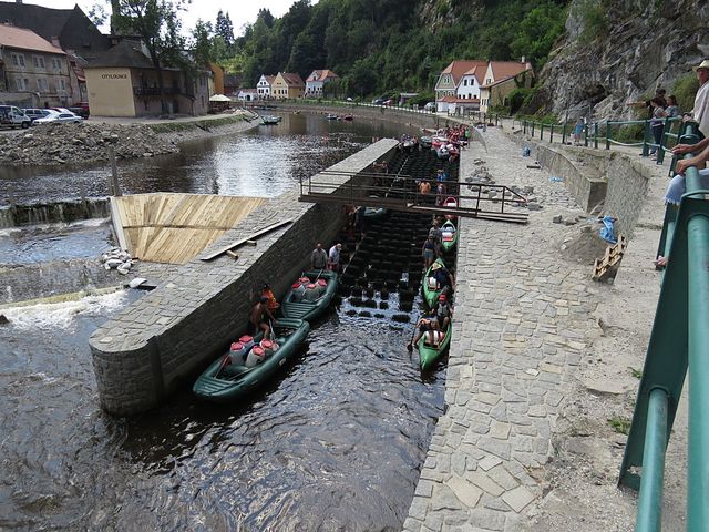 Abychom vklouzli do současnosti, zašli jsme před odjezdem z Krumlova k jezu, chvíli pozorovali projíždějící vodáky a loučili se s místem, kam se při každé příležitosti zase rádi podíváme.