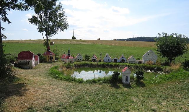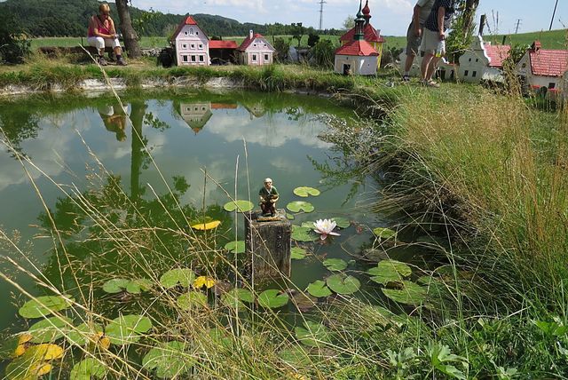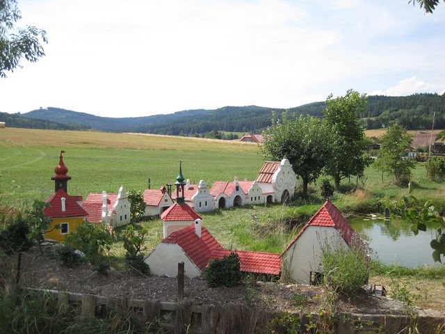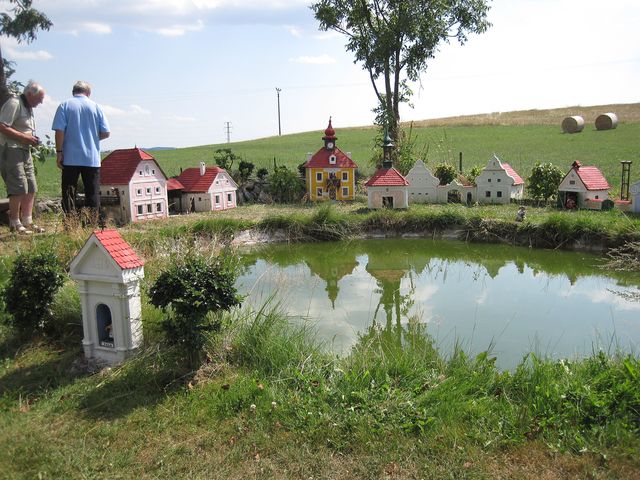 Chtěli jsme na vlastní oči vidět mini-náves v Plešovicích, dílo tamějšího šikovného občana, proto byla obec u Krumlova naší první zastávkou při cestě domů.