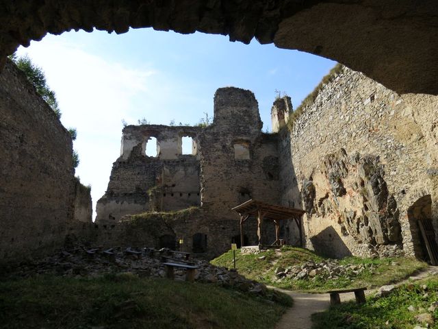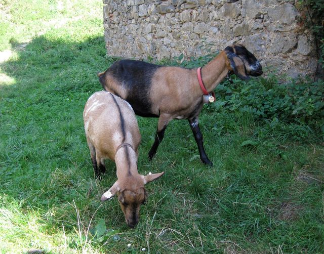 Prošli jsme třemi hradebními branami, prostorné nádvoří bylo liduprázdné, vstříc nám vyběhly tři kozičky, které asi plnily funkci sekaček, tedy vlastně hradní zaměstnankyně. 🙂