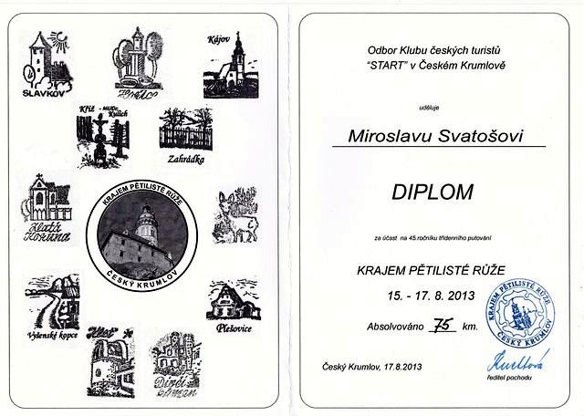Ahoj Míšo a Míro, můj hlavní obdiv k tomuto příspěvku sklidil Mirek za nádherné fotky Krumlova. Dostal víc prostoru než jindy, Krumlov si to zaslouží.V letošním roce jsem se Krumlovem zabývala víc, tak jsem ho prolezla různými směry, ale tak hezké úlovky jako on jsem nezískala. Je bezva, že svůj web provozujete a dáváte nechtíc návod kudy putovat a na co nezapomenout. Máte velkou výhodu, že vaše trasy připravují turističtí profesionálové, kteří detailně znají terén. Šokovalo, že jste navštivili zaniklé Trojany, hned vedle jsou Pasovary,bývalá tvrz,zaniklá obec, velmi kouzelné místo.To, co já složitě objevuji, vy získáváte na stříbrném podnosu, važe si vašich organizátorů.Těším se, co další ročník KPR nabídne. Majka