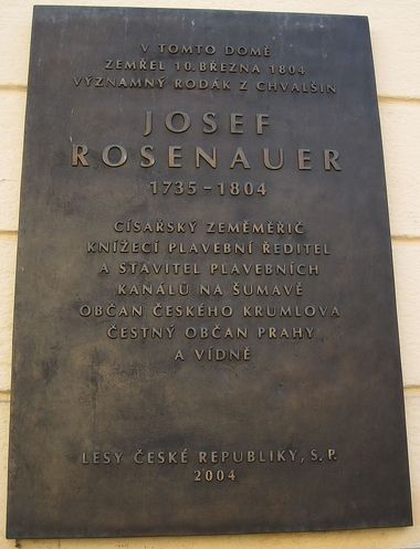 Všimla jsem si, že na vedlejším domě, kde teď sídlí prodejna perníku, je pamětní deska fenomenálnímu staviteli plavebních kanálů na Šumavě, rodáku z blízkých Chvalšin, Josefu Rosenauerovi. (M+M Svatošovi – Borová Lada 2011 a Borová Lada 2012)
