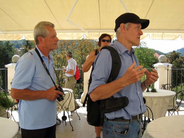 V neděli 18. srpna jsme byli po naložení zavazadel do auta připraveni s brožurou Krumlovskými zákoutími v ruce vyrazit od Budějovické brány na procházku centrem města. Štěstí však přeje připraveným – v momentě, kdy jsme došli na most přes potok Polečnici, začínala komentovaná vycházka vedená panem Václavem Codlem, právě tím, jehož soubor 1750 fotografií z Krumlova na DVD jsme včera jako dárek dostali od krumlovských přátel!