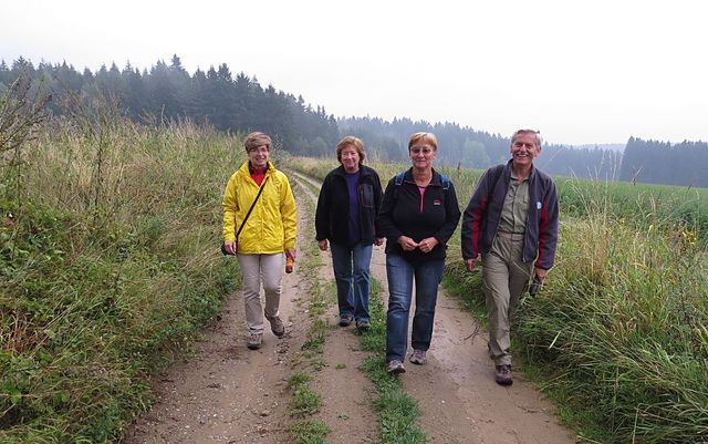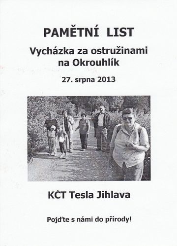 Odbor KČT Tesla Jihlava pořádá podobné výlety každý rok v tomto období, a tak jsme rádi přijali pozvání na odpolední vycházku do oblíbené rekreační lokality Jihlavanů. V původním plánu bylo i koupání v rybníce, který je hlavním zdrojem radosti chatařů, ostružiny měly být bonusem. Ze severu Evropy však poslali jakousi studenou frontu s deštěm a s tím se nedá nic dělat, jen přečkat. Naše malá optimistická skupinka si navlíkla bundy a vydala se z Vysoké, kam jsme dojeli autobusem, přes kaluže na Okrouhlík,