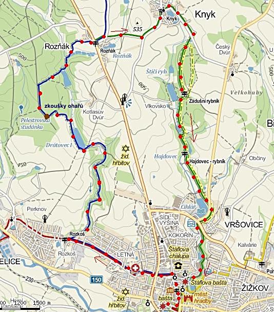 Trasa našeho okruhu: Havlíčkův Brod – Rozkoš – rybník Drátovec – Rozňák – Knyk – rybníky Zádušní, Hajdovec, Cihlář – Havlíčkův Brod = 15 km