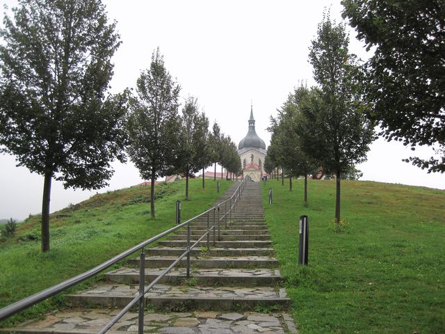 Zpět do Žďáru jsme se vrátili vlakem a protože počasí začalo ukazovat vlídnější tvář, zajeli jsme do areálu Zelená hora, což je od roku 1994, kdy byl zdejší kostel sv. Jana Nepomuckého zapsán na listinu kulturního dědictví UNESCO, místo světoznámé.