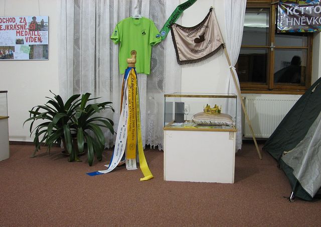 kde jsme objevili i insignie pořadatelů této celostátní nejnavštěvovanější turistické akce, které Maruška Vincencová převzala na loňském Posledním puchýři v Plzni – korunu, prapor a pamětní stuhy z jednotlivých ročníků.