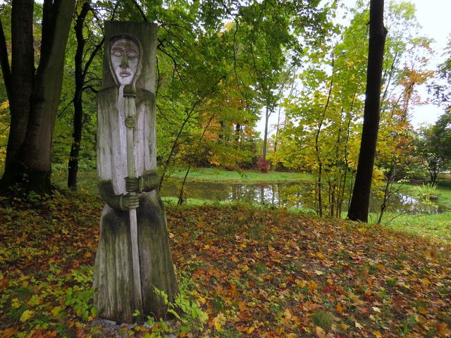 Půvabné prostředí parku doplňují dřevěné sochy vytvořené účastníky sochařského sympozia při známém festivalu Pacovský poledník – při pohledu na ně si uvědomíme, jak nám dřevo slouží ve všech podobách.