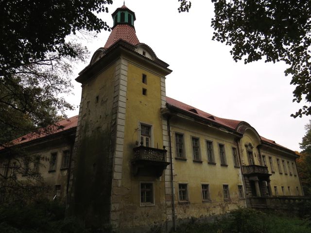 Zdejší zámek byl postaven v polovině 14. století jako vodní tvrz, v 18. století byl barokně upraven a obklopen anglickým parkem. Dějiny se s ním ale nemazlily, proto dnes vypadá hodně unaveně, dočetla jsem se, že prý snad se začíná v jeho prospěch něco dít.