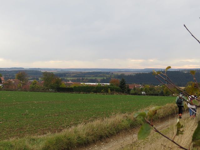 Skupinku osmi turistů, ve které jsme byli i my, převezli pořadatelé autem do Lukavce, odkud jsme se vydali po zeleně značené Sovově naučné stezce do Pacova.
