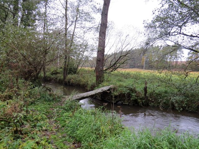 Pomalu jsme se přesunuli do mělkého údolí, kterým si vyhloubila cestu říčka Trnávka – přešli jsme ji po skvostné kamenné lávce, štíhlém a neopracovaném kameni, opravdovém přírodním klenotu.