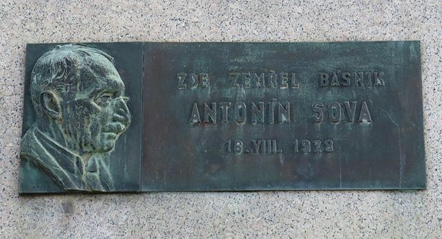 jsme mířili do centra a naši průvodci průběžně upozorňovali na objekty, které by návštěvníkovi Pacova neměly uniknout – samozřejmě se často objevovalo jméno Antonína Sovy (1864–1928), jehož životní pouť tu začala i skončila, a kterého si tady velmi považují. Většinu pracovního života sice prožil básník v Praze (byl ředitelem městské knihovny), ale často a rád se do Pacova i do Lukavce vracel a tento kraj byl jeho věčnou inspirací. Na domě, kde Antonín Sova zemřel, je pamětní deska: