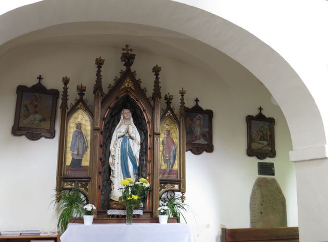 Pamětní deska oznamuje, že je zde uložena urna s jeho popelem: