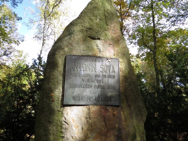 Kvůli vztahu svého otce k těmto místům se rozhodl věnovat JUDr. Jan Sova jeho osobní i literární pozůstalost pacovskému muzeu a na své náklady vybudoval pomník v městských sadech, které teď nesou básníkovo jméno. Navštívili jsme park již včera cestou z Lukavce a také dneska nás tam naši průvodci zavedli.