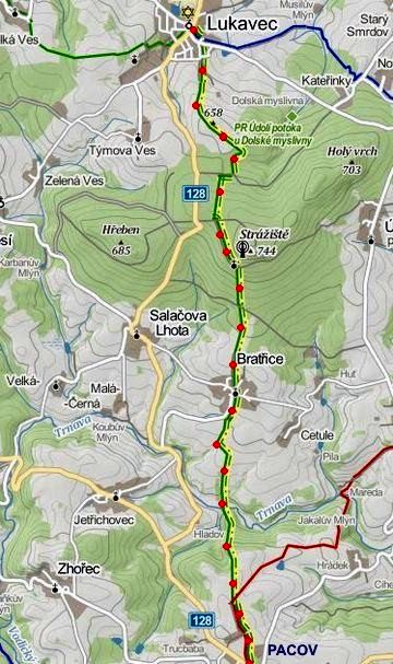 Trasa: Lukavec – Stražiště – Bratřice – Pacov = 13 km